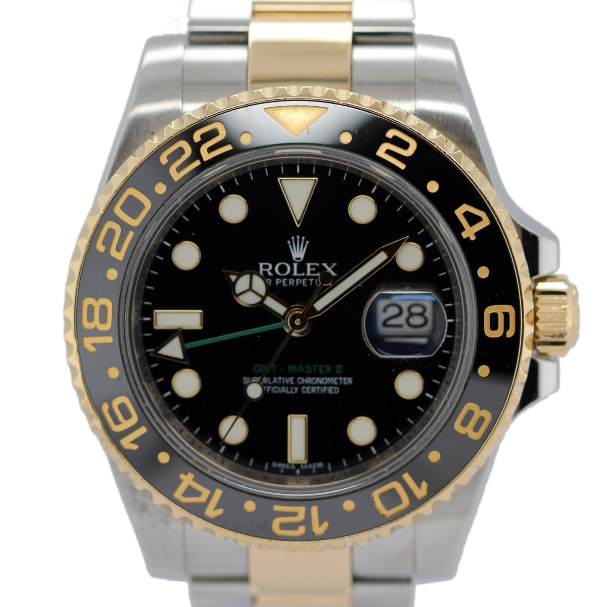 Die Rolex GMT Master II Ref. 116713LN verbindet luxuriöses Design mit hoher Funktionalität. Mit einem Gehäuse aus Edelstahl und 18 Karat Gelbgold, einer drehbaren Cerachrom-Lünette und einem präzisen Automatikwerk, bietet diese Uhr exakte Zeitmessung über mehrere Zeitzonen. Entdecken Sie dieses elegante Meisterwerk, das Stil und Zuverlässigkeit perfekt vereint.